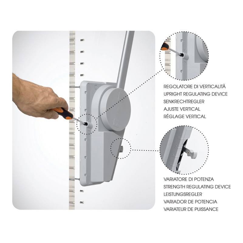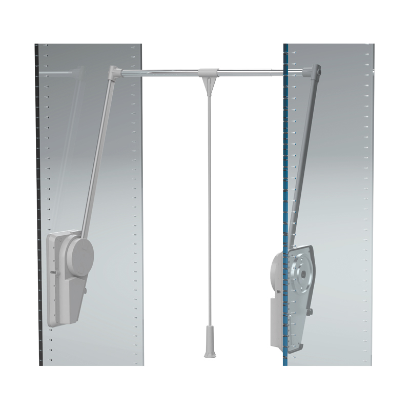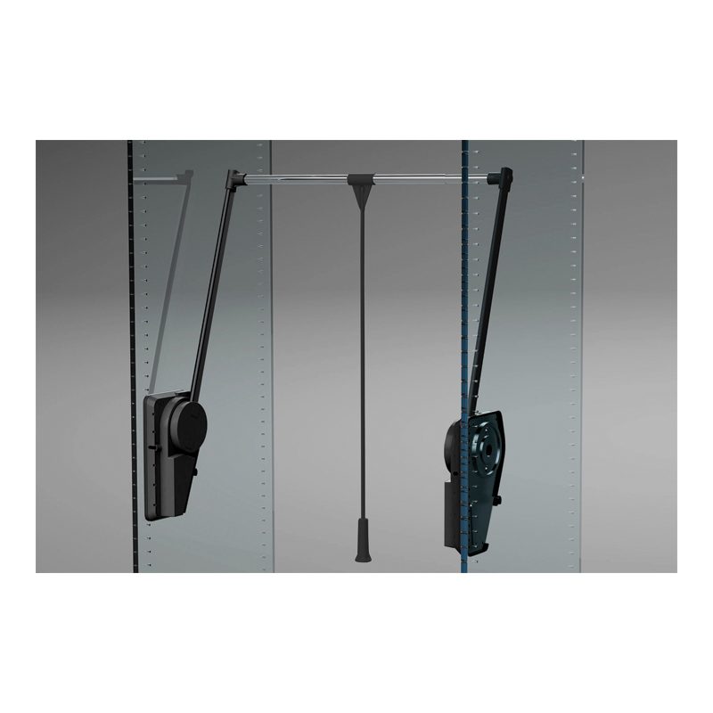 Elévateur double à capacité de charge réglable (14-16-18-20 kg) et extensible en largeur.Fixations latérales sur perforation "Système 32". Possibilité d'application au mur (avec platines 470 01530 00010 à commander séparément).Fonctionne sur vérin hydraulique, sans huile.Tube, bras et tringle de poignée en acier verni.Armatures en nylon renforcé par fibre de verre.