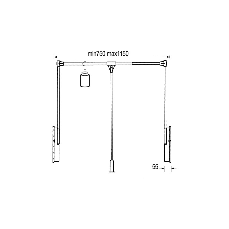 Il est possible de varier l'inclinaison des bras pour les différentes profondeurs d'armoire - Extraction accrue des vêtements.