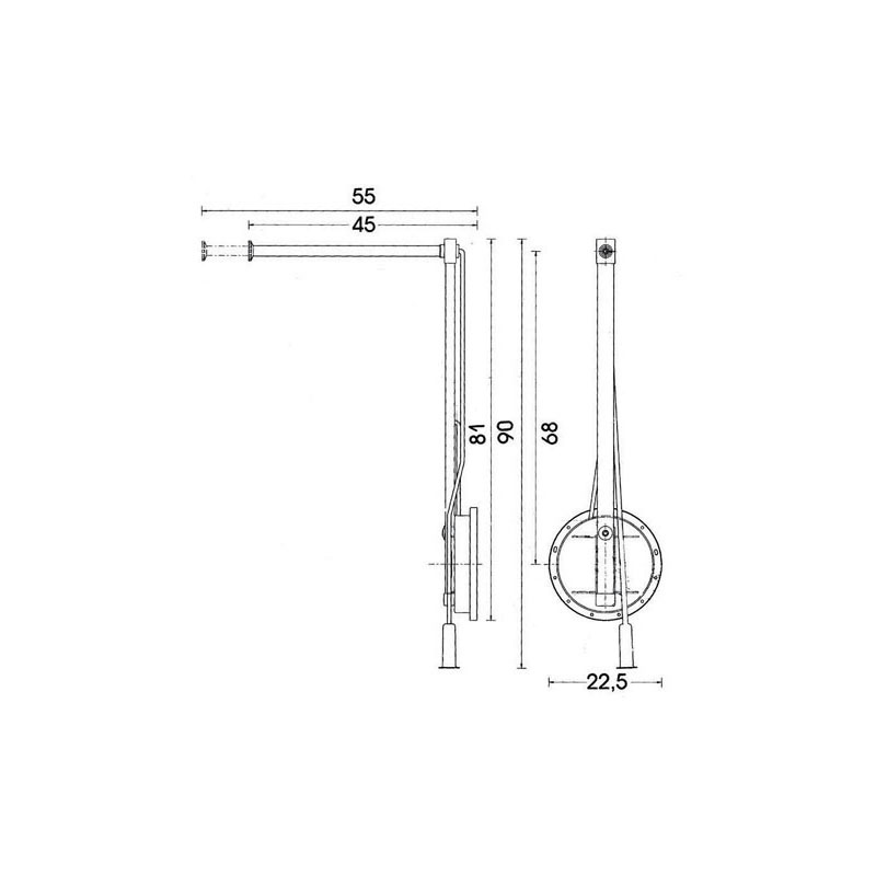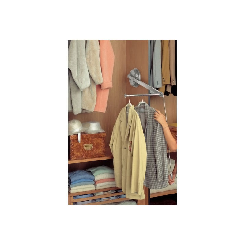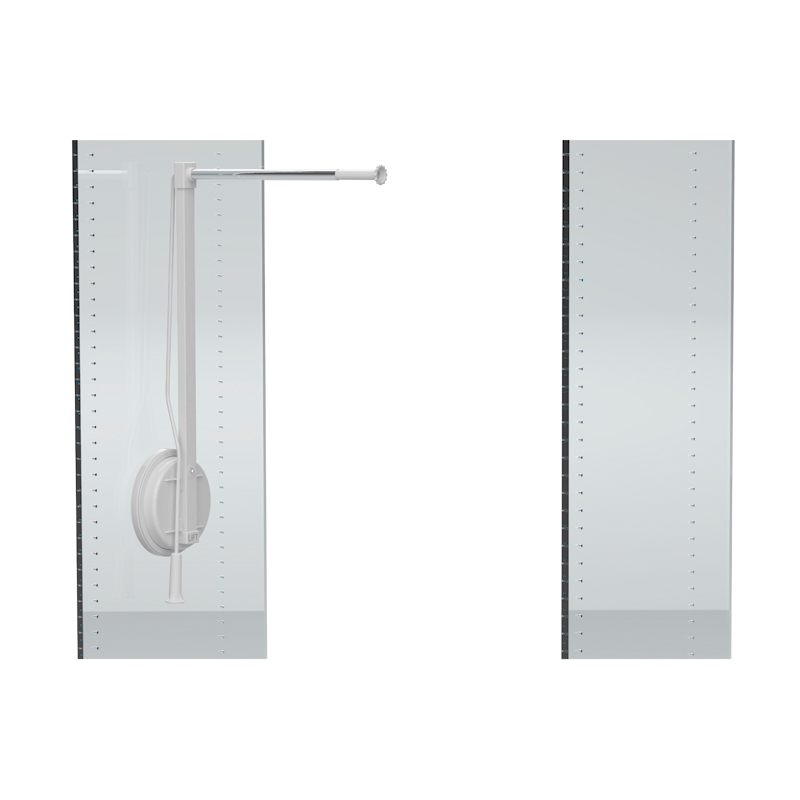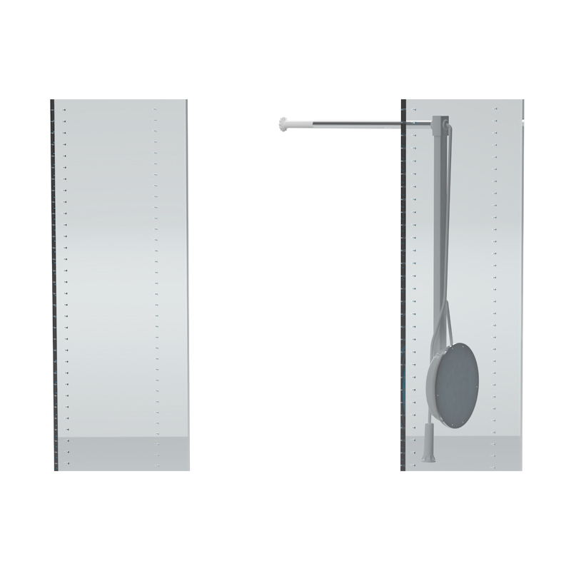 Élévateur à un seul bras acier verni à fixation latérale.Parfait pour les armoires avec une seule porte et pour espaces de largeur jusqu'à 600 mm.Blocage du bras dans la position du chargement.