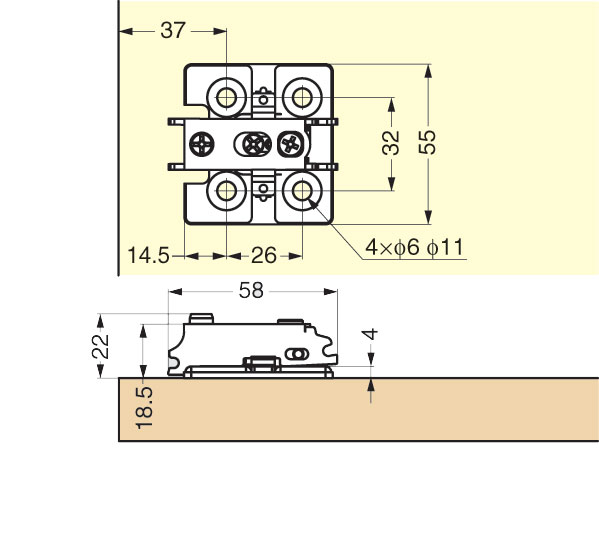 Utilisable avec charnière invisible porte large. EA 32 mm x2.Ecartement 26 mm.