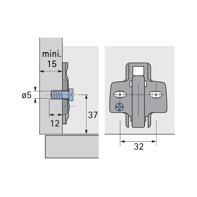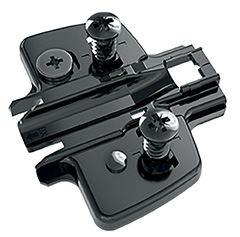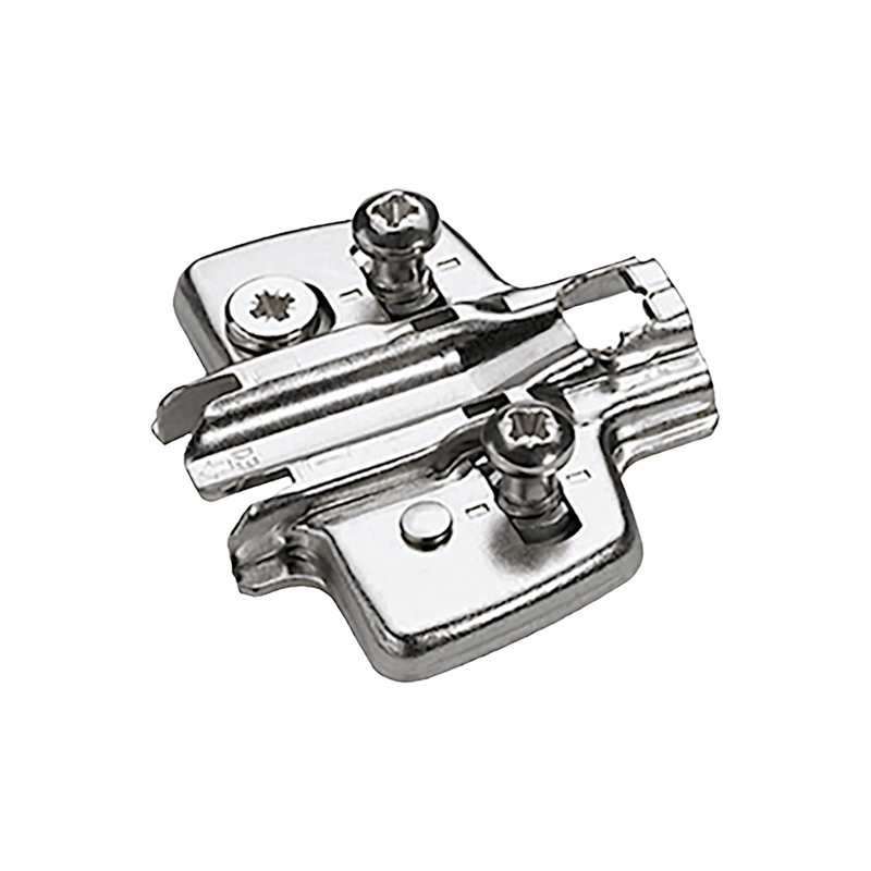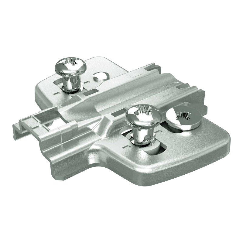 Avec vis de fixations directes Ø 5 x 12 mm.Réglage vertical par excentrique ± 2 mm
