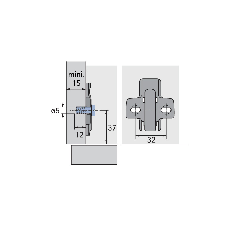 Avec vis de fixation Direkt pour perçages Ø 5 x 12 mm.Trous oblongs pour réglage en hauteur ± 3 mmEurovis prémontées.