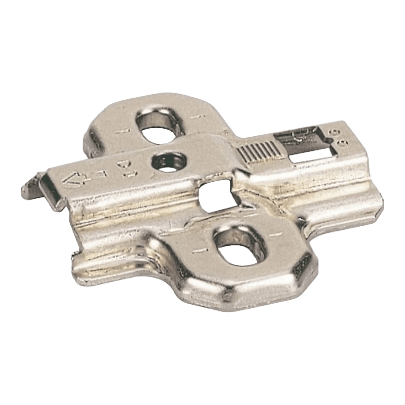 Plaque de montage en croix à visserà trous oblongs diametre 5,4 mm pour réglage de hauteurFixation avec vis à bois à tete fraisée diametre 4,5 mm