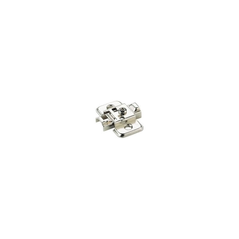 Embase cruciforme en acier nickelé. Réglage vertical par excentrique.Perçage à 37 mm du bord.Pour charnière BASIC ST.
