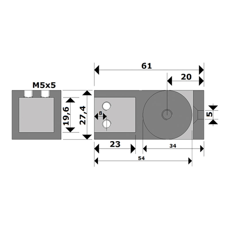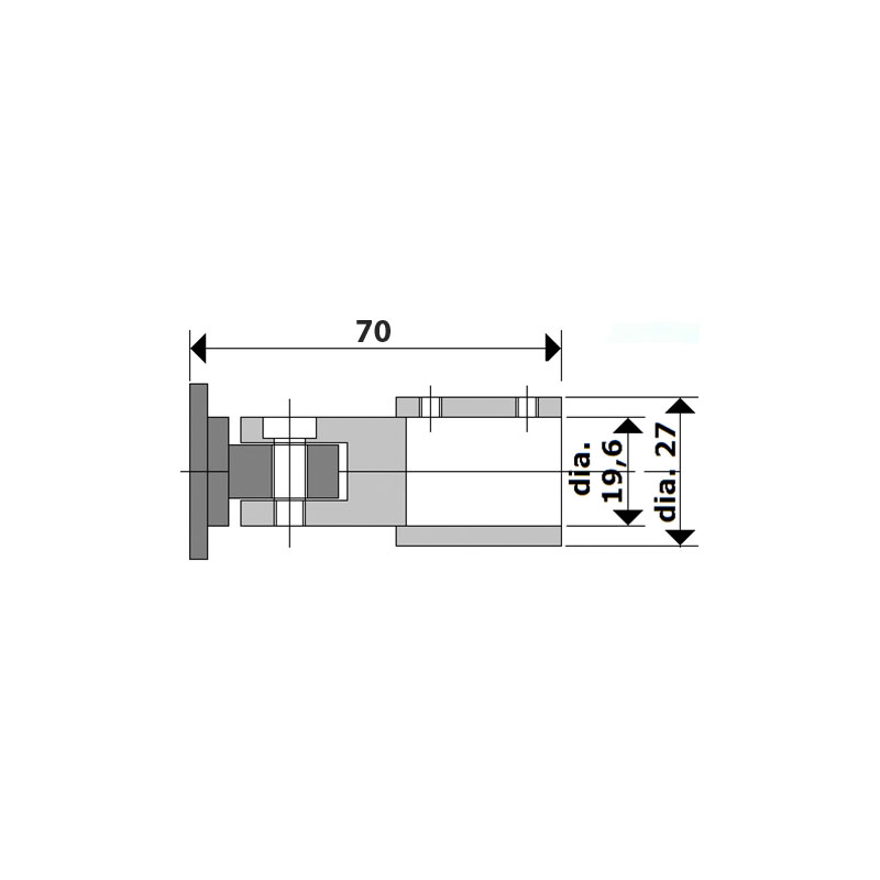 Embase murale orientable pour raidisseur de cabine de douche à tube rond Ø19mm ou tube carré 19x19mm.