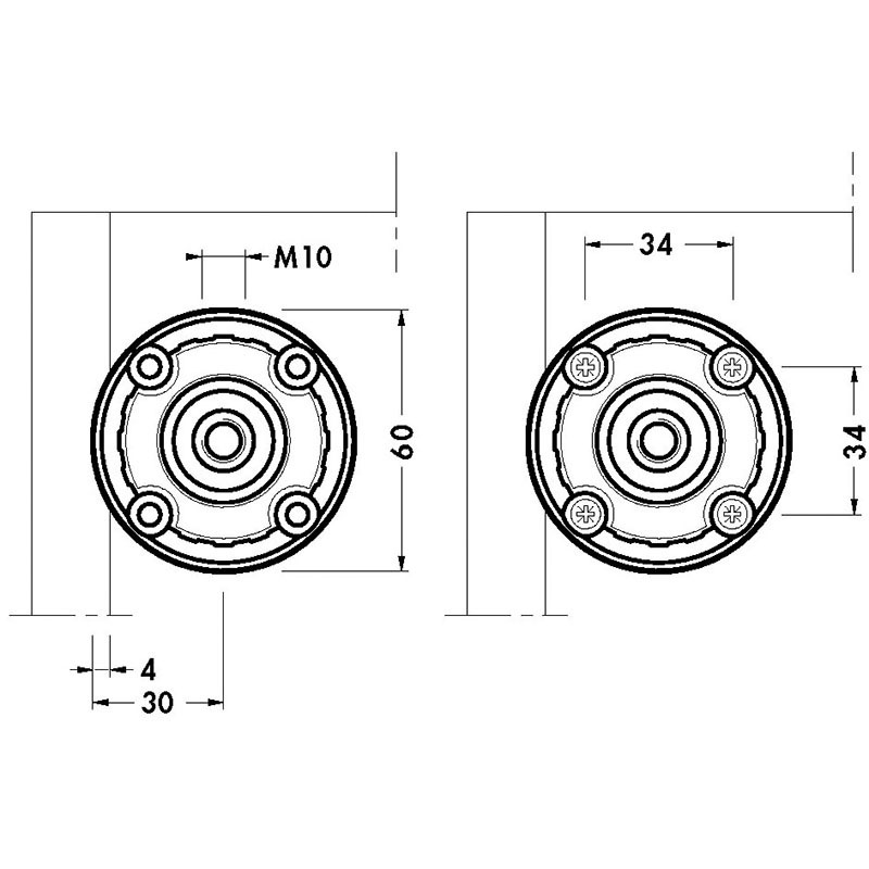 Embase noir Ø 60mm pour vis M10.Embase pour pied hauteur 120 et 150 mm.