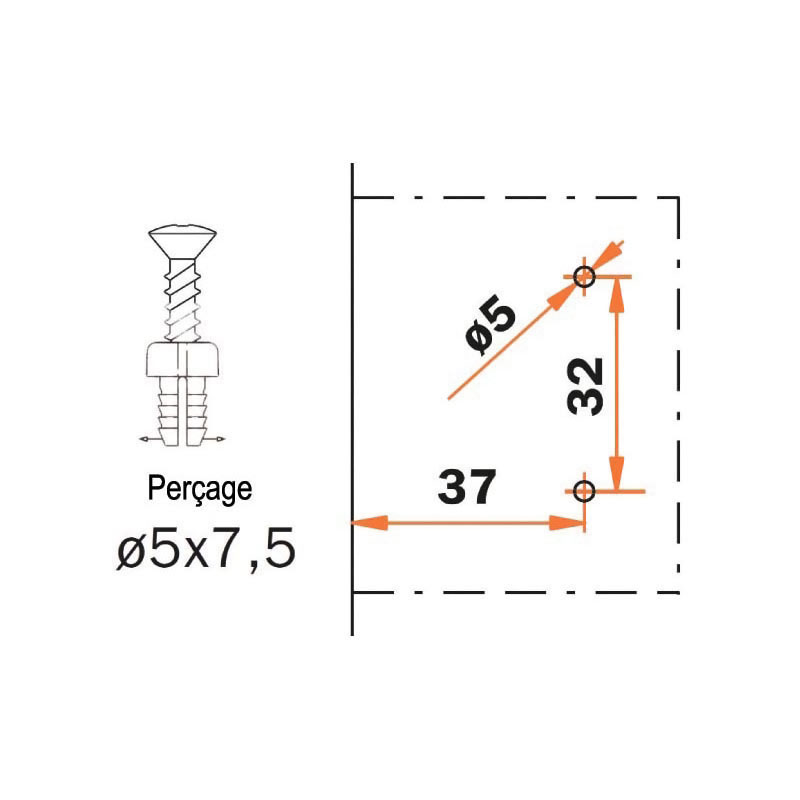 Réglage frontal par vis excentrique.Fixation par chevilles pré-monté