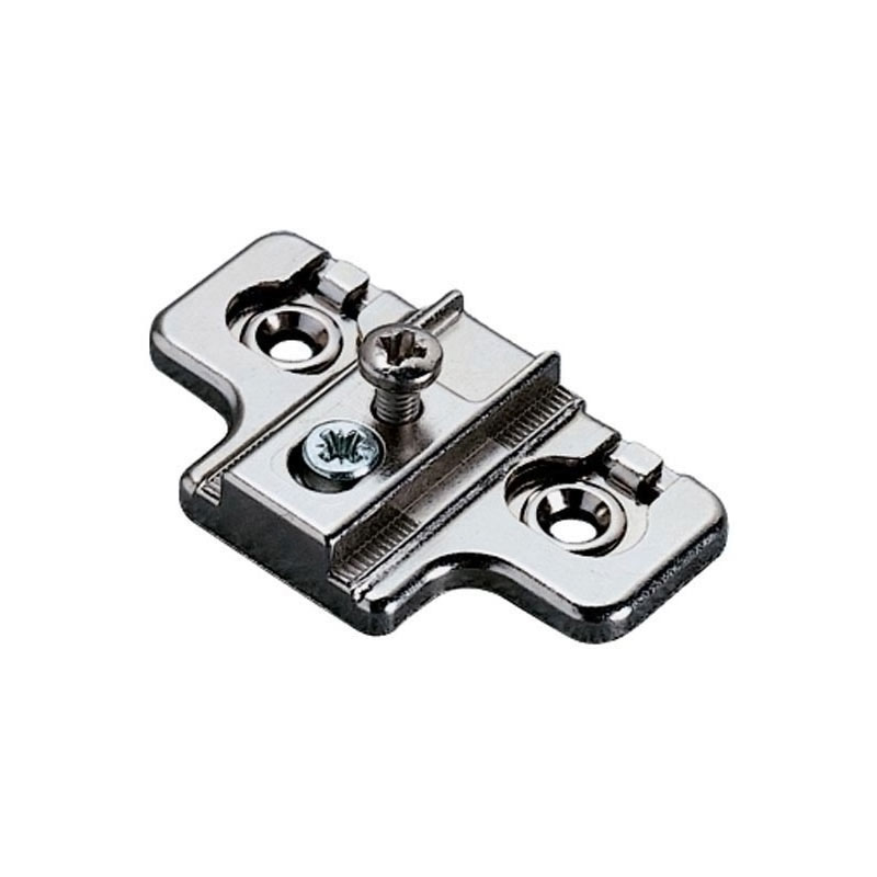 Embases asymétriques cruciformes à visser.Réglage vertical ±1,5 mm par vis excentrique.