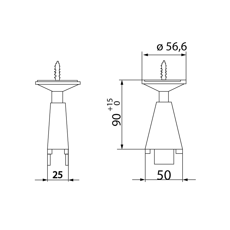 Embout avec vérin pour la fixation du profil vertical STILIPHOS au plafond.S'insère et se visse dans le haut du montant.Hauteur ajustable par vérin.La base du vérin n'est pas fixe, comblant ainsi les irrégularités du plafond.2 possibilités de fixation dans le kit : par vis/cheville ou pointe.