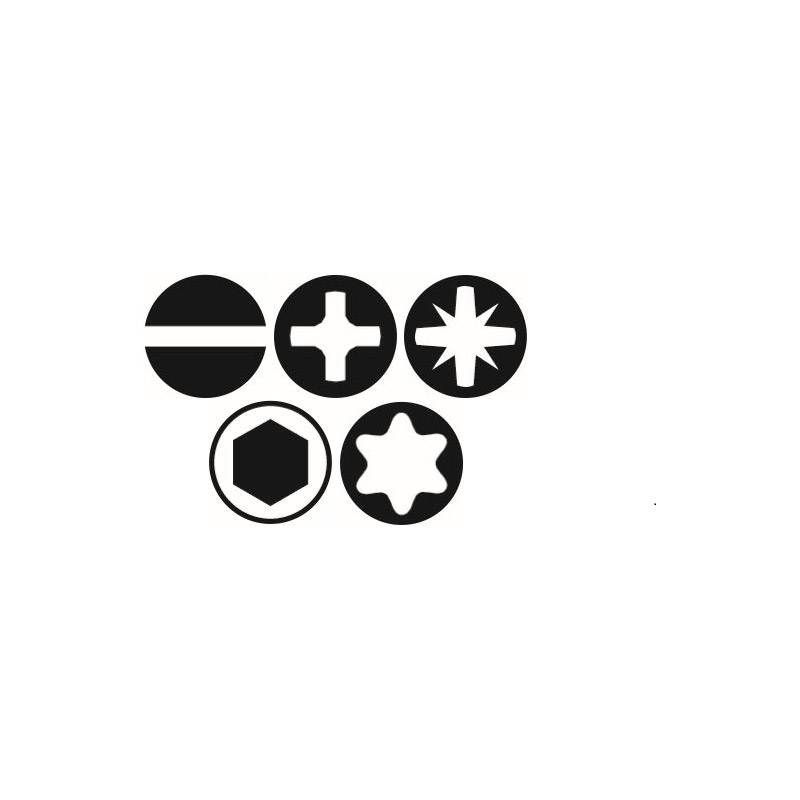 - 15 embouts Torx : 2 x T10 - 3 x T15 - 2 x T20 - 3 x T25 - 3 x T30 - 2 x T40. Conforme à la norme DIN 3126 (CE) - ISO 1173.