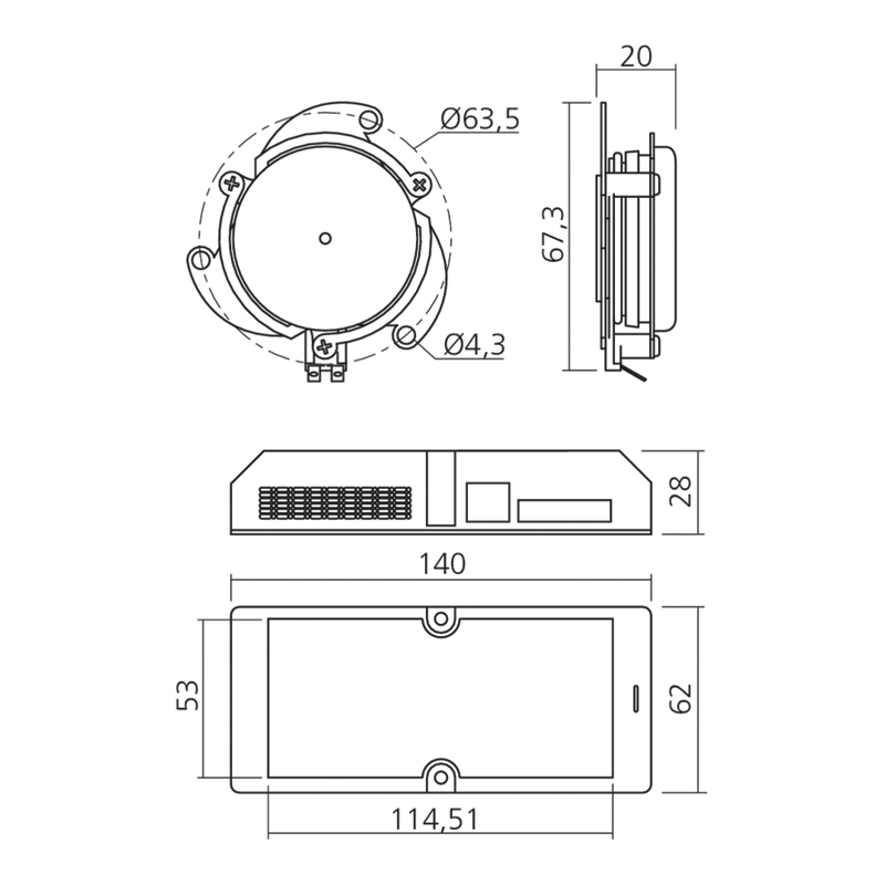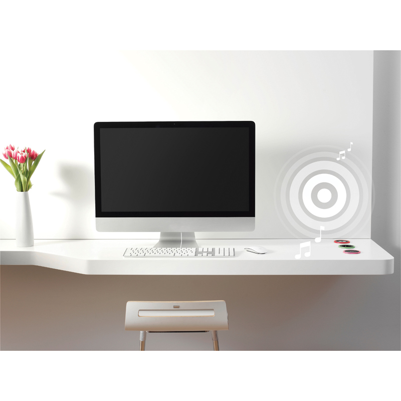 Transducteurs acoustiques à fixer à l'intérieur d'un meuble, d'une cloison ou derrière un miroir afin de les transformer en haut-parleurs : la surface fait office d'enceinte.