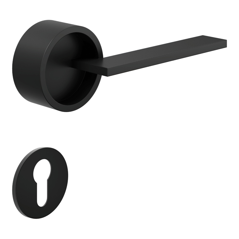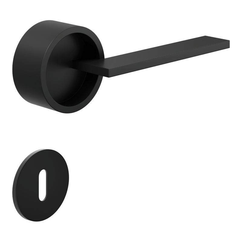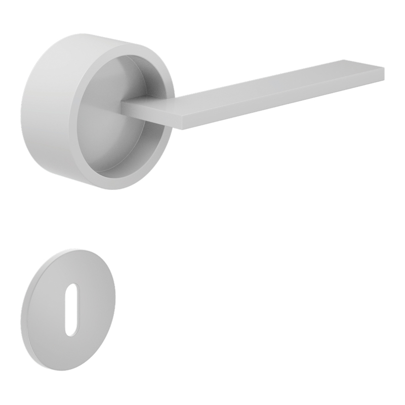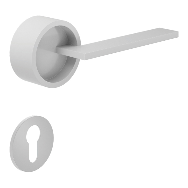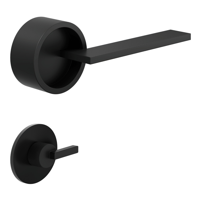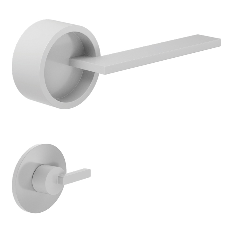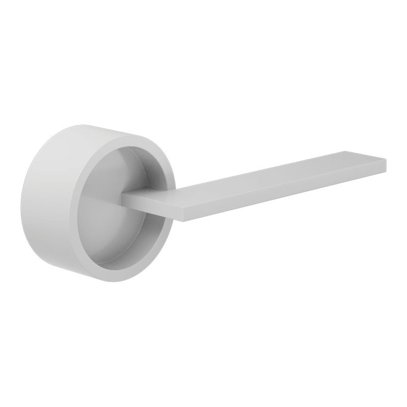 Béquille double sur rosaces fines ép.4mm x Ø 50mm, longueur totale 169mm.Type condamnation : bouton Ø 20mm.