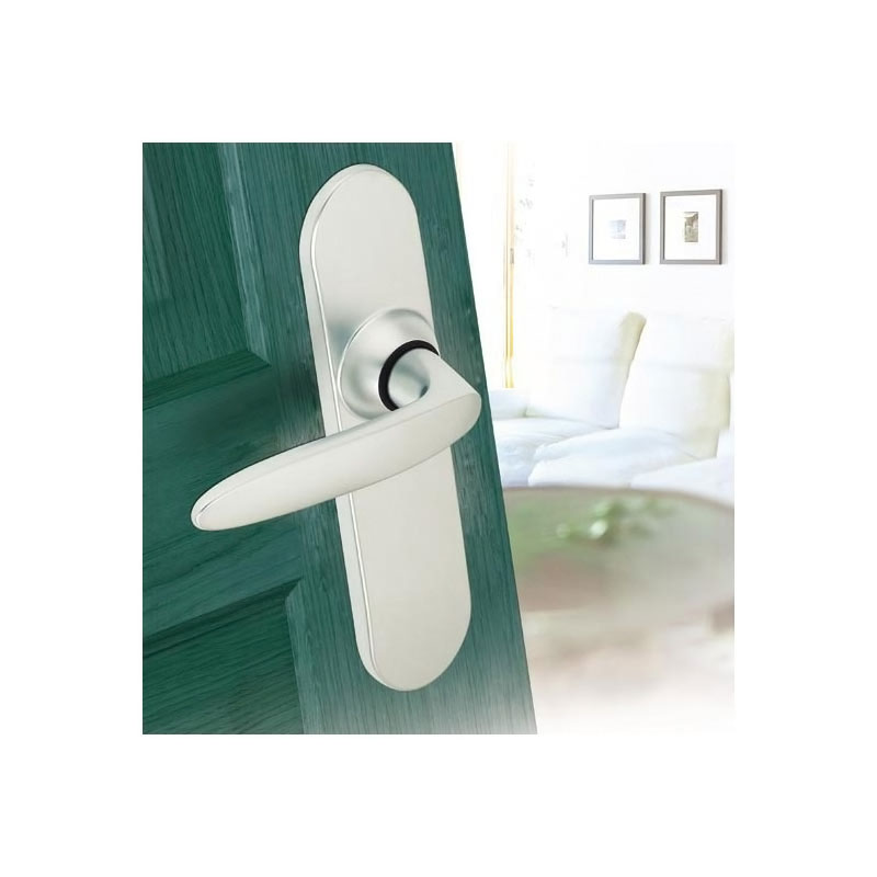 Ensemble monobloc : béquilles et petites plaques 185 x 41mm solidarisées.Plaque fondue avec piliers taraudés intégrés et vis invisibles côté extérieur.Founi avec tige carrée de 7mm et vis de fixation.Pour porte épaisseur standard de 40mm et serrure entraxe 70mm.