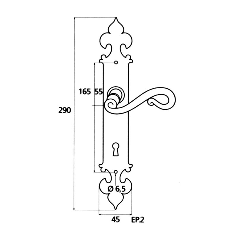 Double béquille sur plaques 290 x 45 mm.Livré avec carré de 7 mm et visserie.