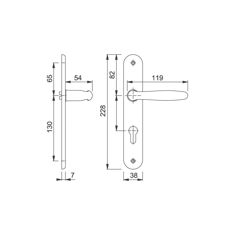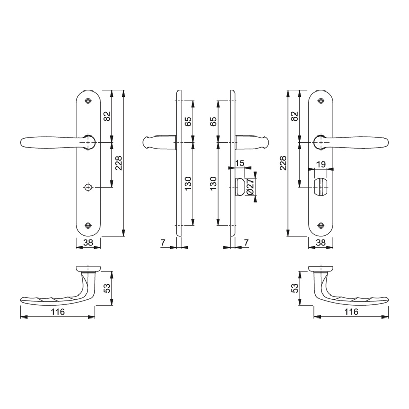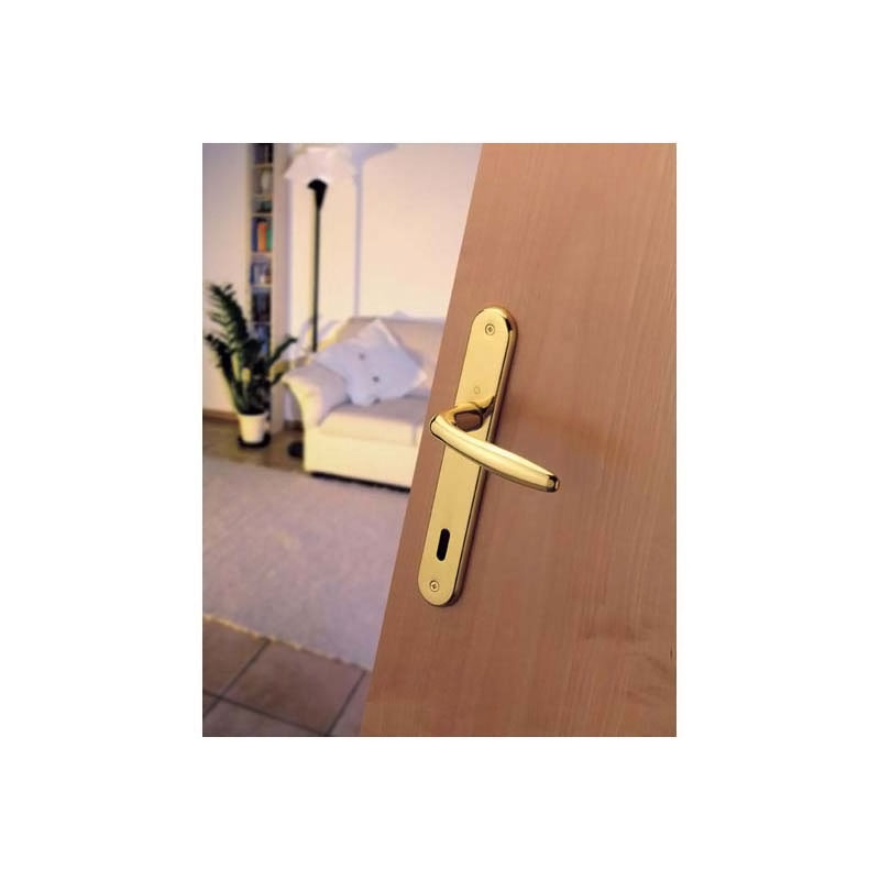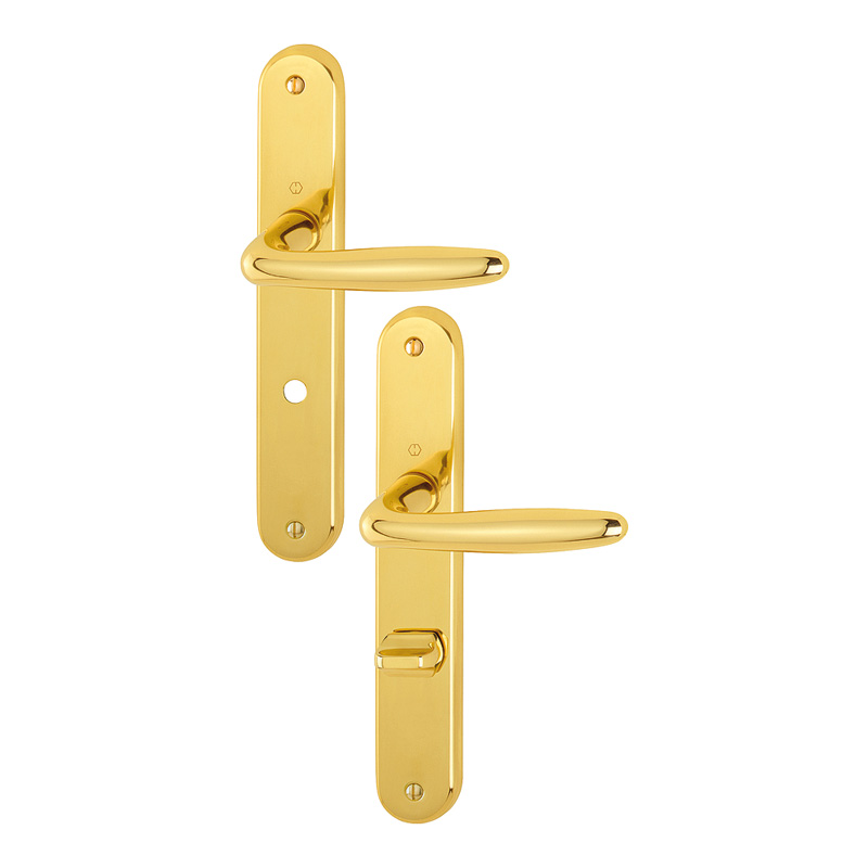 Garniture sur plaques longues 228x38mm, pour porte intérieure.Assemblage : garniture monobloc , avec ressorts de rappel, bagues de guidage sans entretien.Liaison : carré plein HOPPE. Fixation : visible, vis M4 avec douilles filetées. Pour serrure EA 70mm.Pour porte d'épaisseur 40 à 45mm (40mm pour modèle conda/déconda).