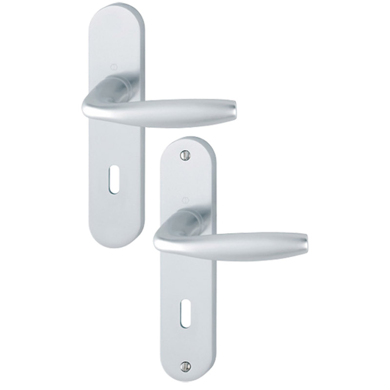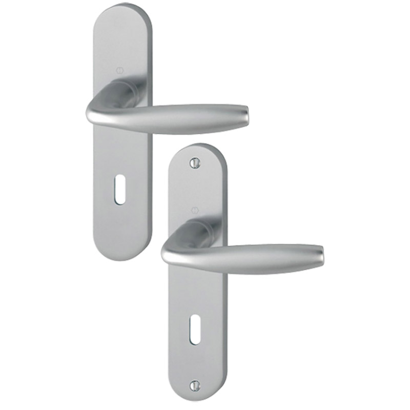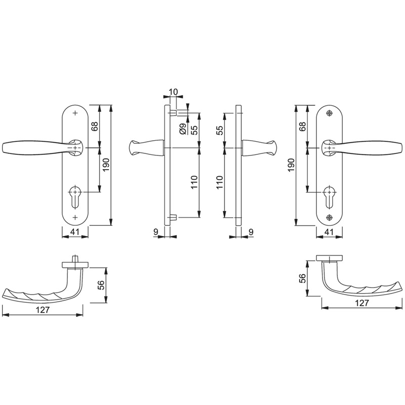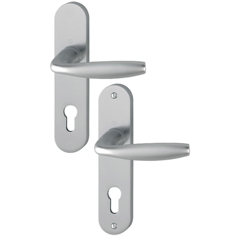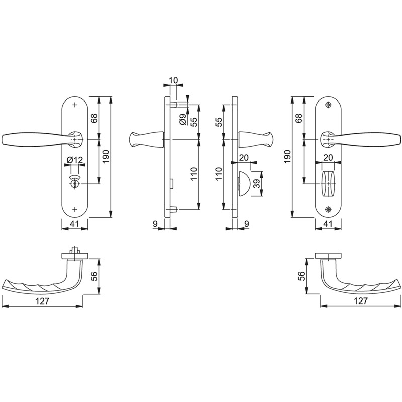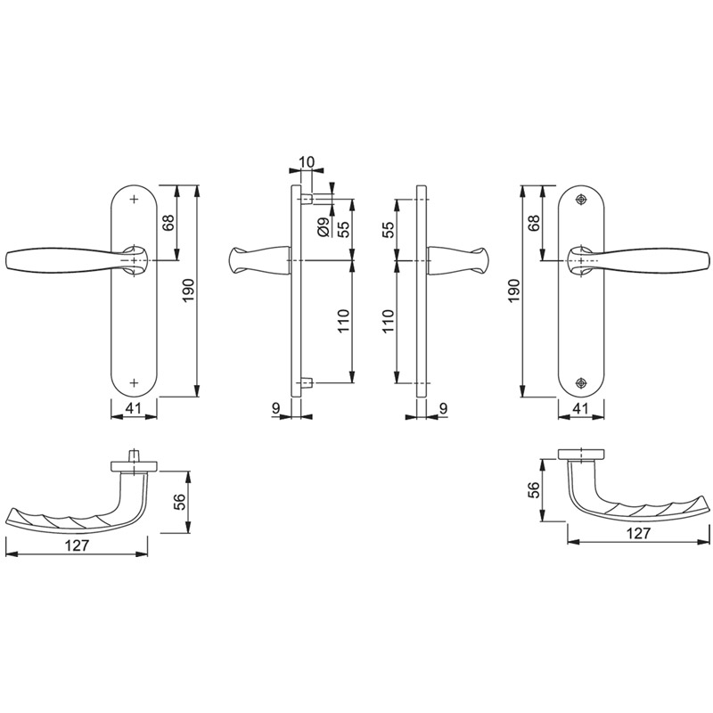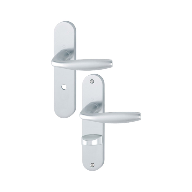 Garniture sur plaques courtes 190x41mm, pour porte intérieure.Assemblage : garniture libre, bagues de guidage sans entretien.Liaison : carré à montage rapide HOPPE avec carré plein (poignées mâle/femelle).Plaques : piliers de fixation côté extérieur, sans côté intérieur.Fixation : visible côté intérieur, traversante, vis filetées M4 côté intérieur.Pour serrure EA 70mm.Certifiée catégorie d'utilisation 3 selon norme DIN EB 1906: 37-0140U, pour bâtiments publics à fréquentation élevée.Résistance très élevée à la corrosion (EN1670, Grade 4).Pour porte d'épaisseur 38 à 47mm (40mm pour modèle conda/déconda).