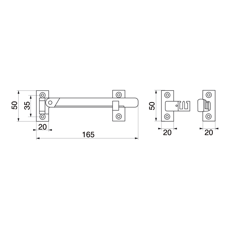 Bras longueur 165mm.Platine et gâche l.20 x ht.50mm.