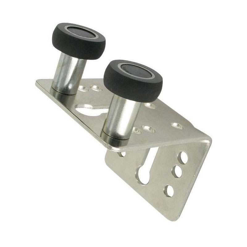L'équerre avec galets associée au profil de guidage permettra l'aménagement de dressing utilisant un vantail à pan coupé en sous pente.Doit être associé avec profil en U de guidage.Pose sous tablette.Équipe de galets Ø20 sur roulements à billes et bandage caoutchouc.
