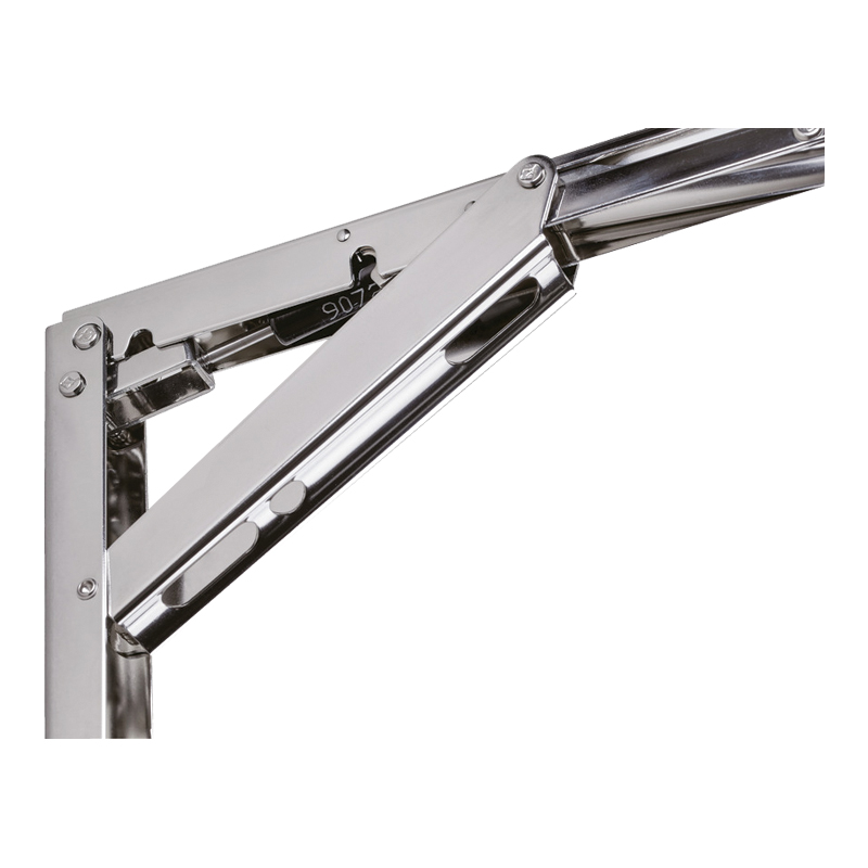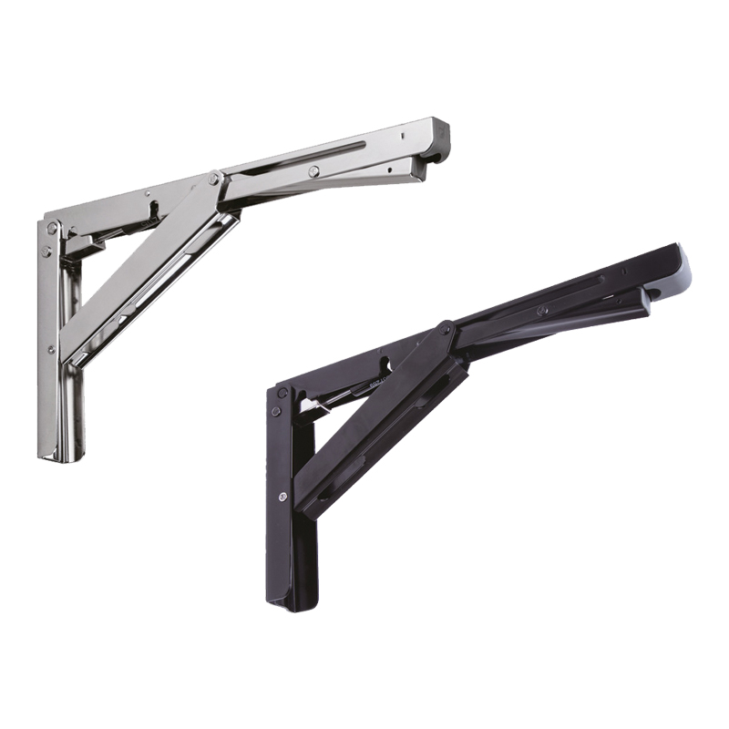 L'équerre se verrouille automatiquement lorsque le volet est en position ouverte.Appuyer sur le levier pour relâcher le verrou.Support avec fonction de charnière dans une unité (ne nécisité pas de charnière supplémentaire).Fermeture en douceur, grâce à l'amortisseur intégré.Possibilité de l'assembler avec la version sans amortie, référence 109 00120 30388 et 109 00120 30302.