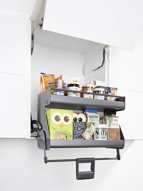 Les ferrures iMove permettent de mettre à portée de main et sans effort les produits stockés dans les parties les plus hautes des meubles suspendus. Facilement utilisable par les personnes âgées, de petite taille, à mobilité réduite ou par les enfants. Le fonctionnement est doux et fluide grâce aux vérins qui accompagnent la course de la ferrure aussi bien en descente qu’au relevage.
