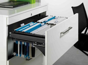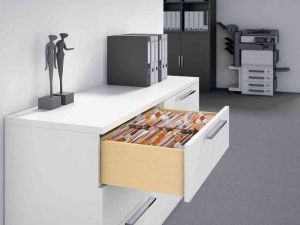 Modèle robuste pour des charges élevées. Renfort empêchant tout fléchissement assuré par des triples chanfreinages sur les parties avant et arrière. Utilisable dans des meubles conformément à la norme DIN EN 14073/74.