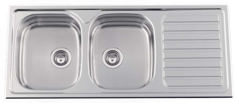 Evier inox 2 bacs + 1 égouttoir, réversible.Vidage automatique.Pré percésLivré avec siphons, bondes Ø90, coupelles inox ramasse déchets, notice de montage, joints et fixations.