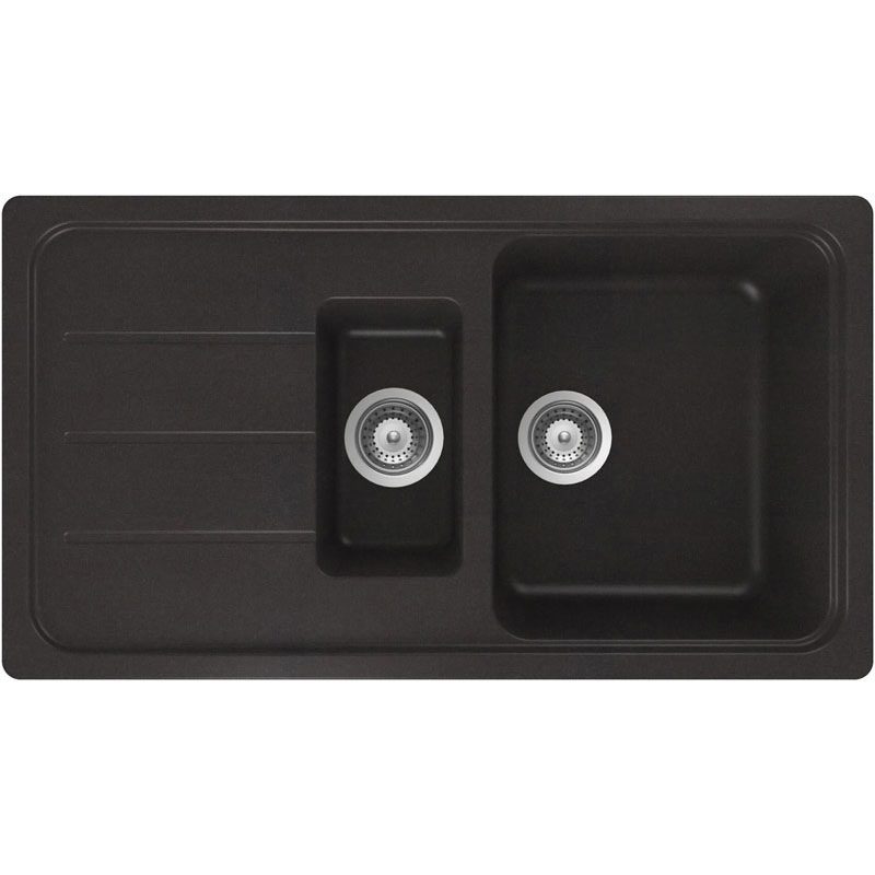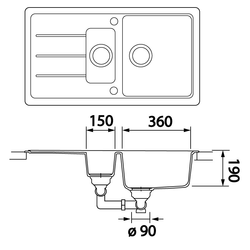 1 bac 1/2 + 1 égouttoirVidage manuel.Montage réversible. Egouttoir droite ou gauche.Non percé mais avec pré-perçage.Livré avec fixations, siphons et bondes inox Ø90mm.