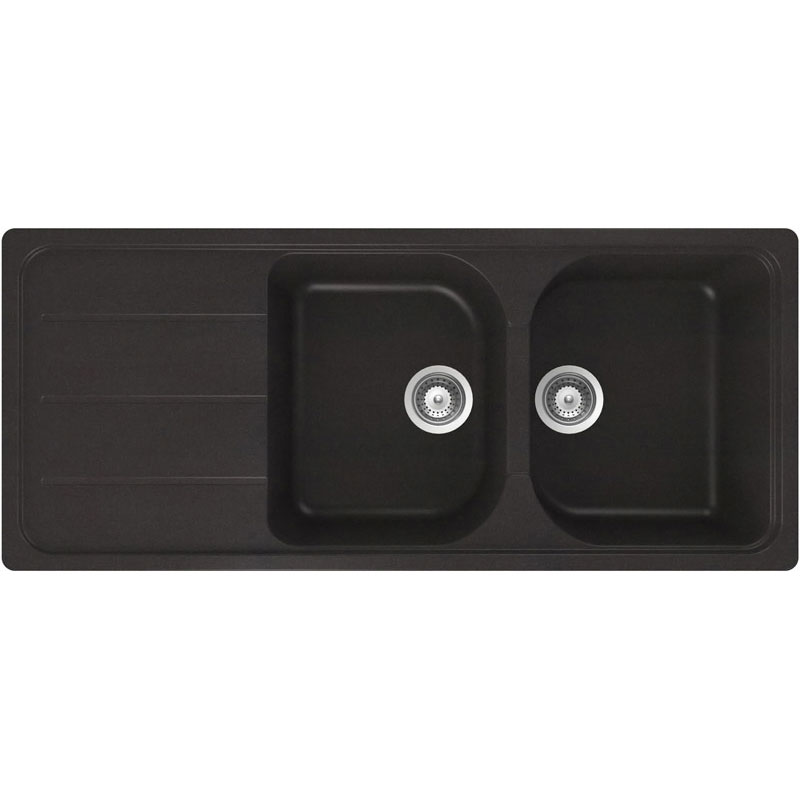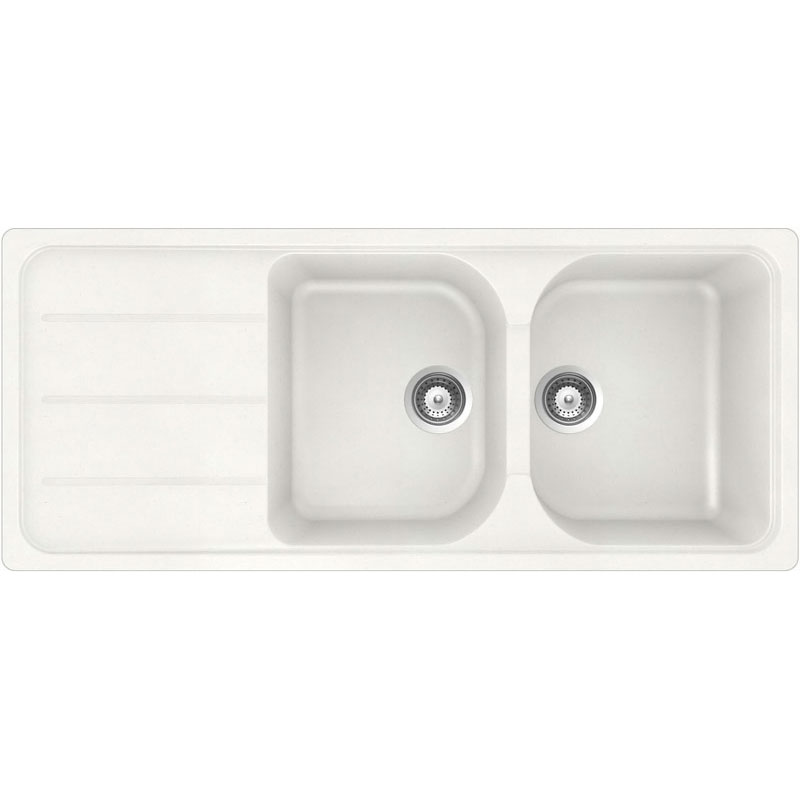 2 bacs + 1 égouttoir.Vidage manuel. Montage réversible. Egouttoir droite ou gauche.Non percé mais avec pré-perçage.Livré avec fixations, siphon et bonde inox Ø90mm.
