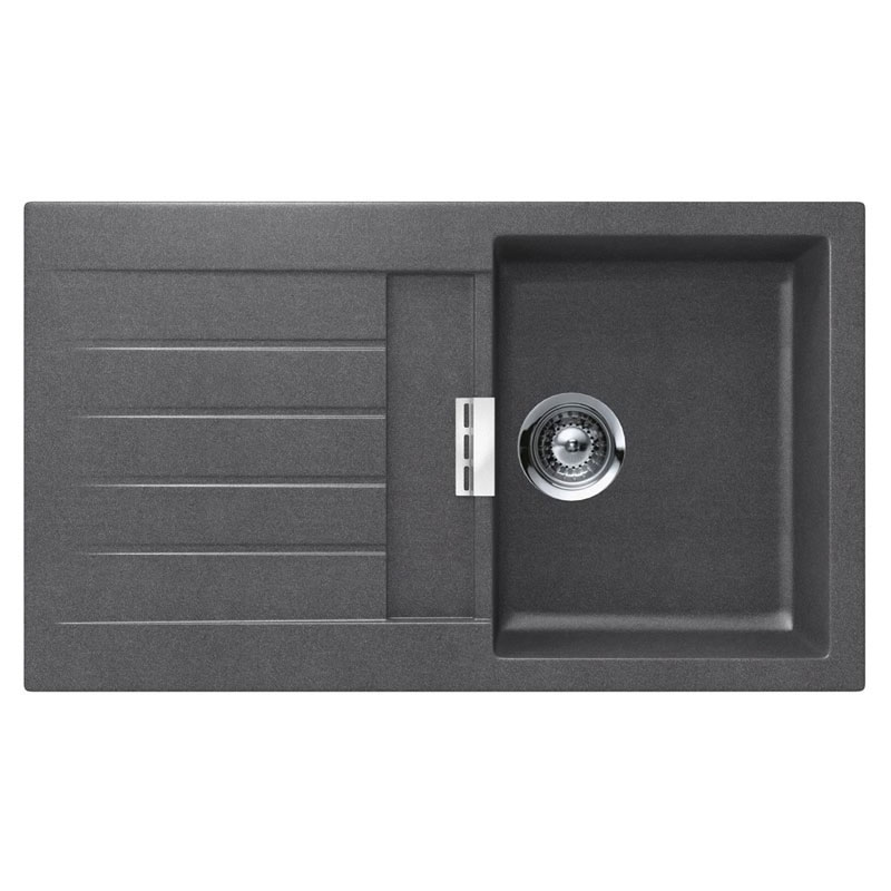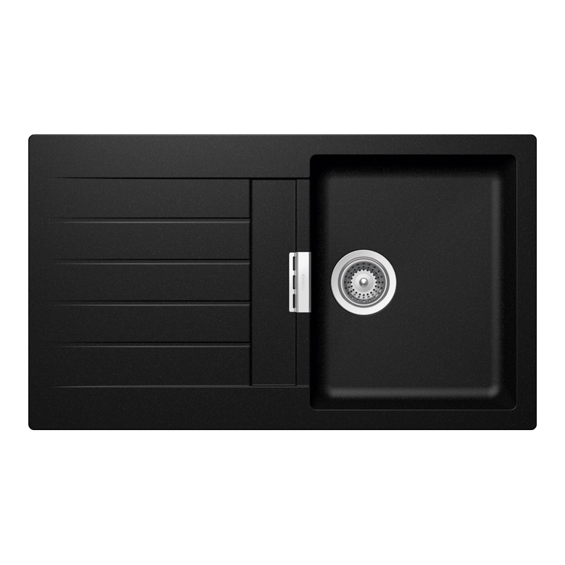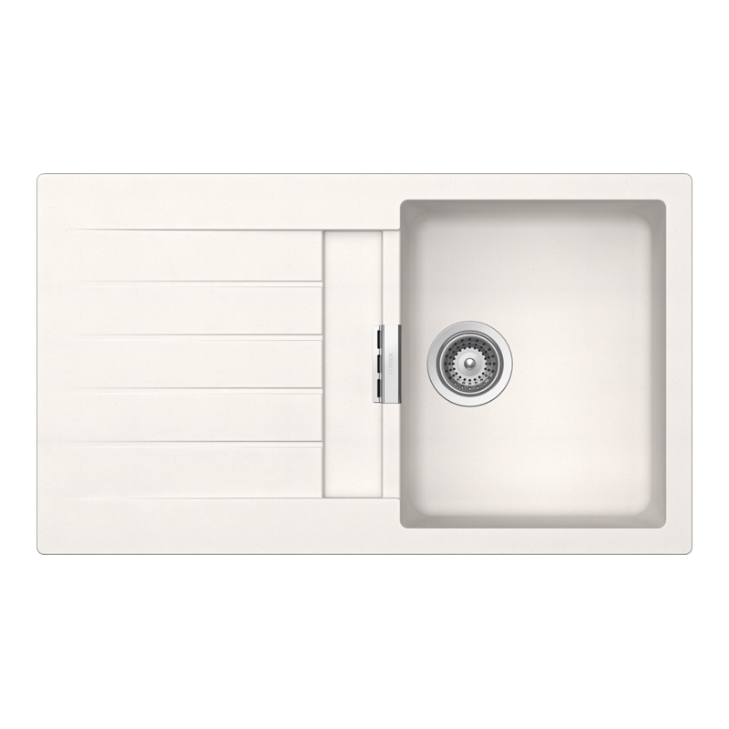 Evier 1 bac + 1 égouttoir.Vidage automatique.Montage réversible. Egouttoir droite ou gauche.Non percé mais avec pré-perçage.Livré avec fixations, siphon et bonde inox Ø90mm.