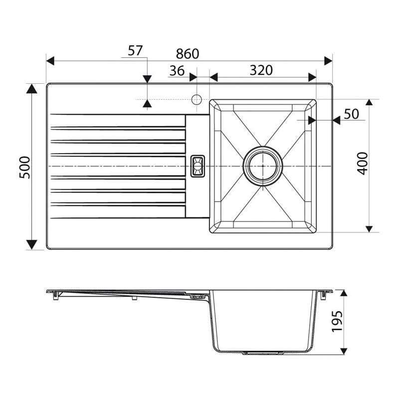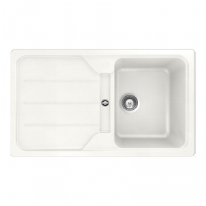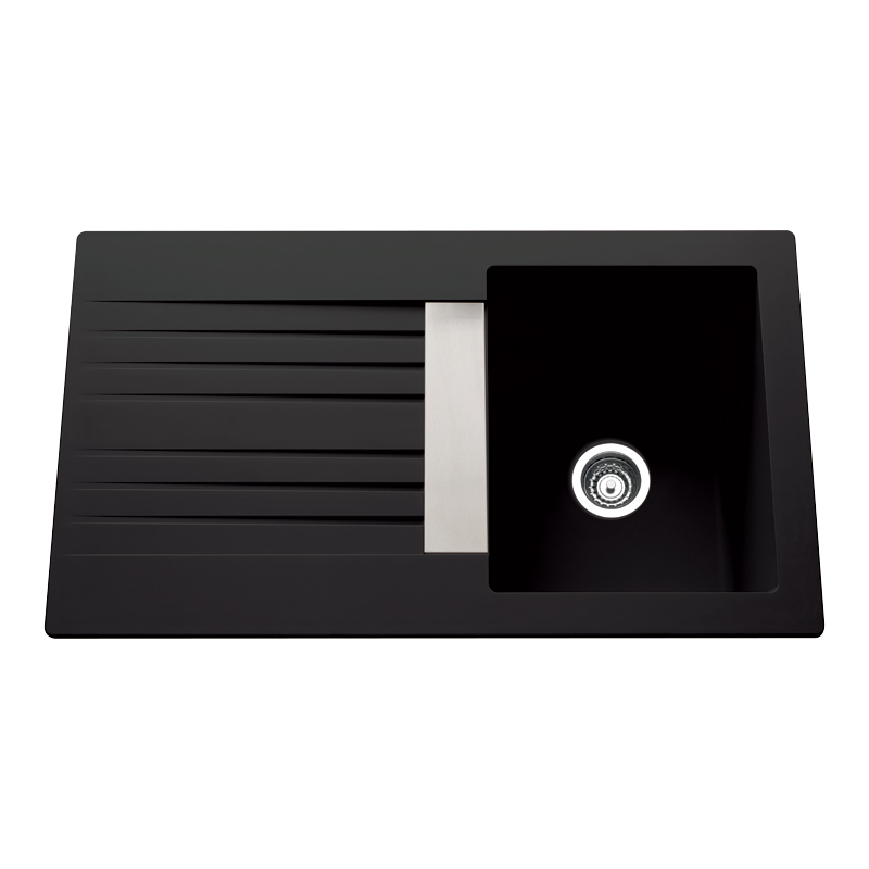 Evier 1 bac + 1 égouttoirVidage manuel.Montage réversible. Egouttoir droite ou gauche.Non percé mais avec pré-perçage.Livré avec fixations, siphon et bonde inox Ø90mm.Livré sans robinetterie.