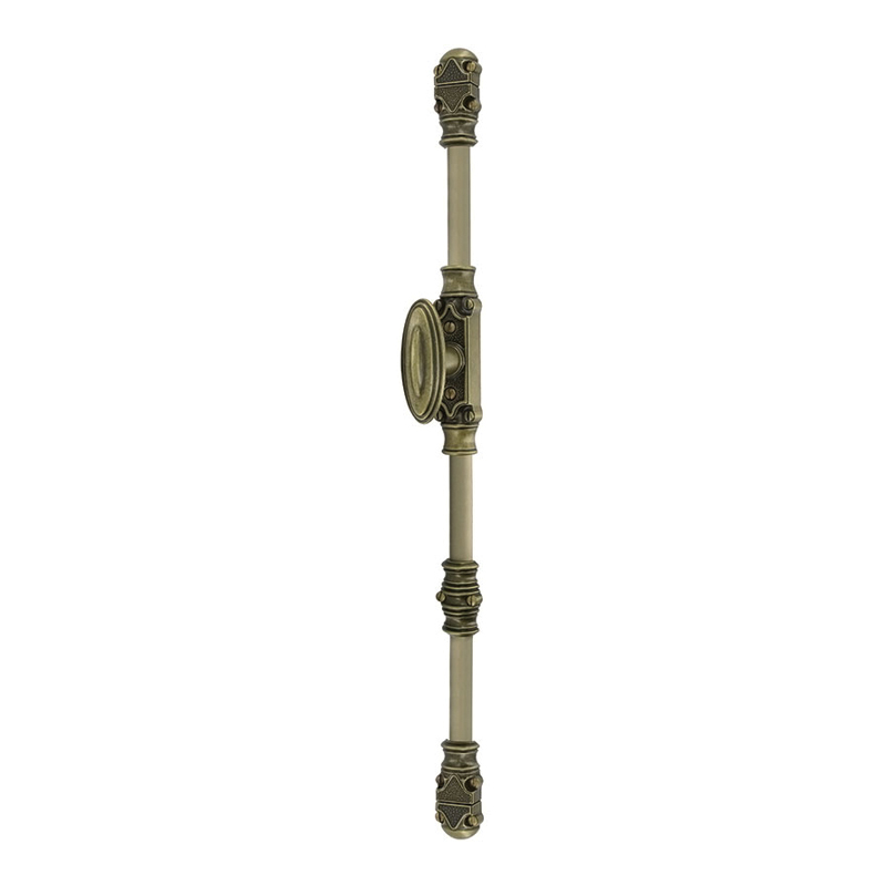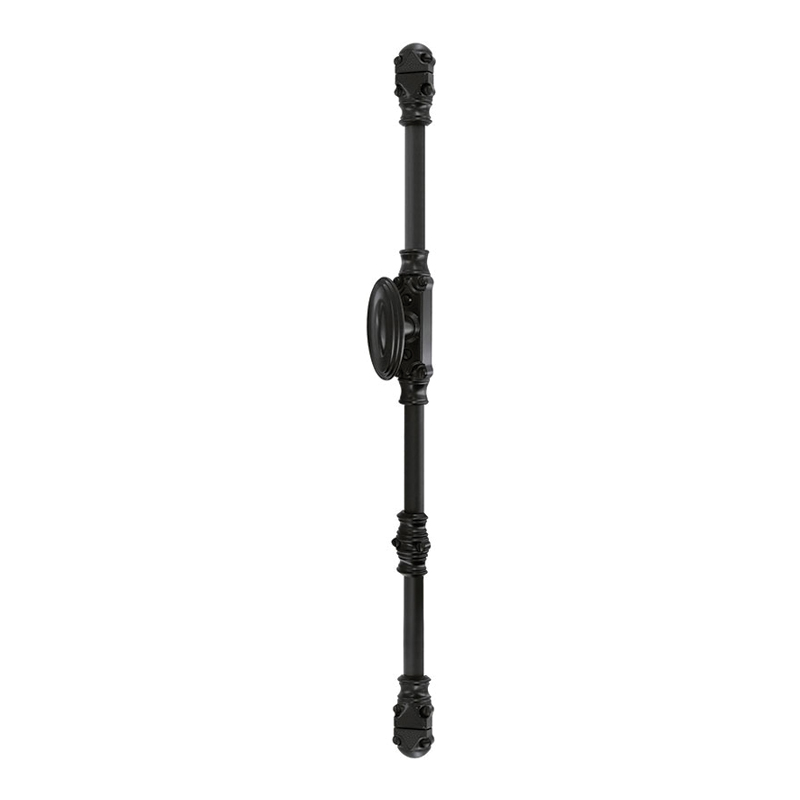Fausse crémone rustique décorative avec boitier largeur 33mm, pour fenêtre et porte fenêtre bois, pvc, alu.Composée de :- 1 boitier avec bouton ovale 76mm- 2 chapiteaux + 2 gâches + 1 coulant- 10 vis bois + 2 vis métaux + 1 carré