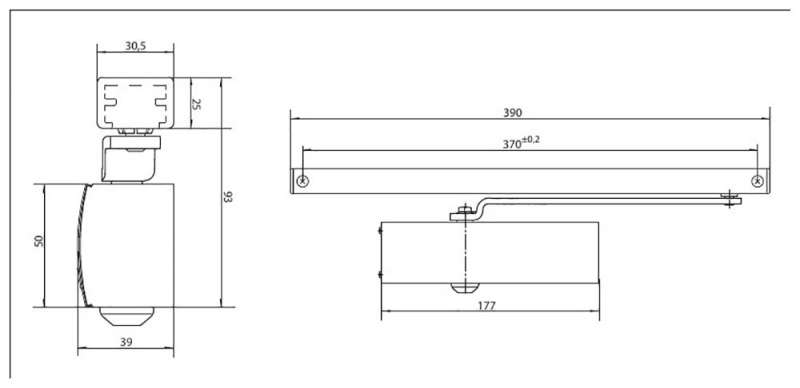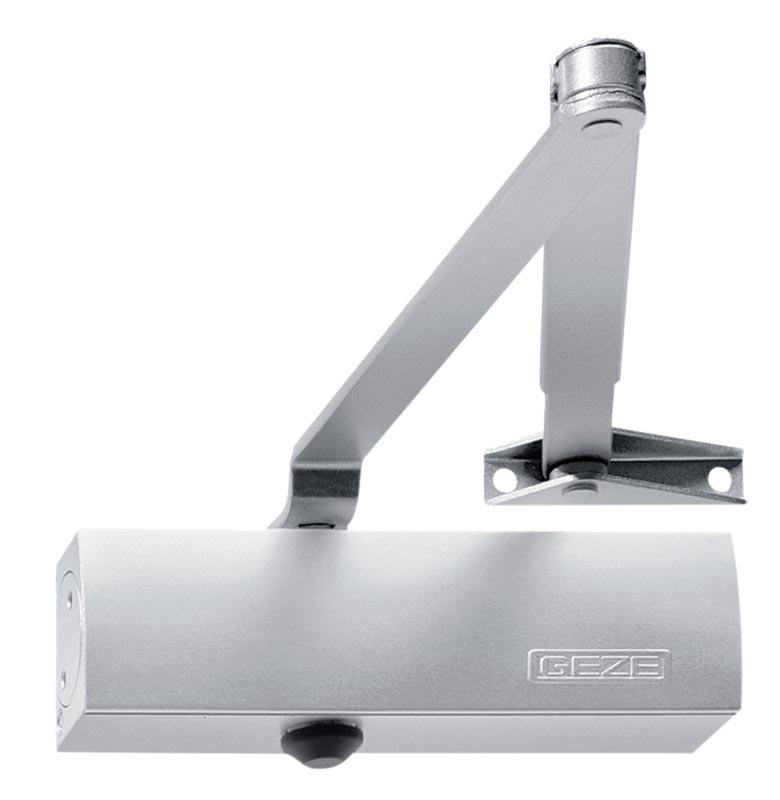 Ferme-porte en applique avec bras à compas pour porte battante à 1 vantail simple action. Montage réversible droite/gauche, côté paumelles ou opposé aux paumelles.Utilisation intérieure.Force réglable EN 3 et 4.Vitesse de fermeture réglable.A-coup final réglable.Agréé coupe-feu et pare-flammes 2H NF EN 1634.Arrêt mécanique (en option) 80 à 150°.NF EN 1154 / CE
