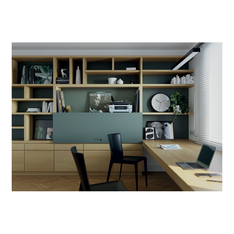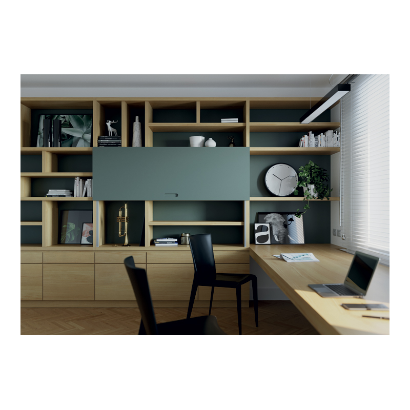 Cette ferrure fonctionne sans contre poids. Le mécanisme d’entraînement est entièrement caché dans un profil horizontal aluminium de section 42x73 mm.