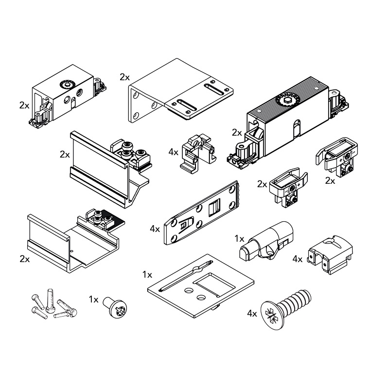 Les rails et amortisseurs sont à commander séparément.