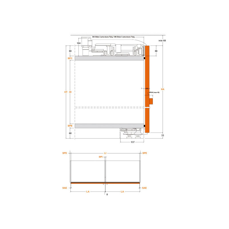 Seuls usinages : L’encastrement des suspensions dans le vantail.L’assemblage et les réglages 3D sont eux aussi d’une grande simplicité et demandent un temps de pose réduit.
