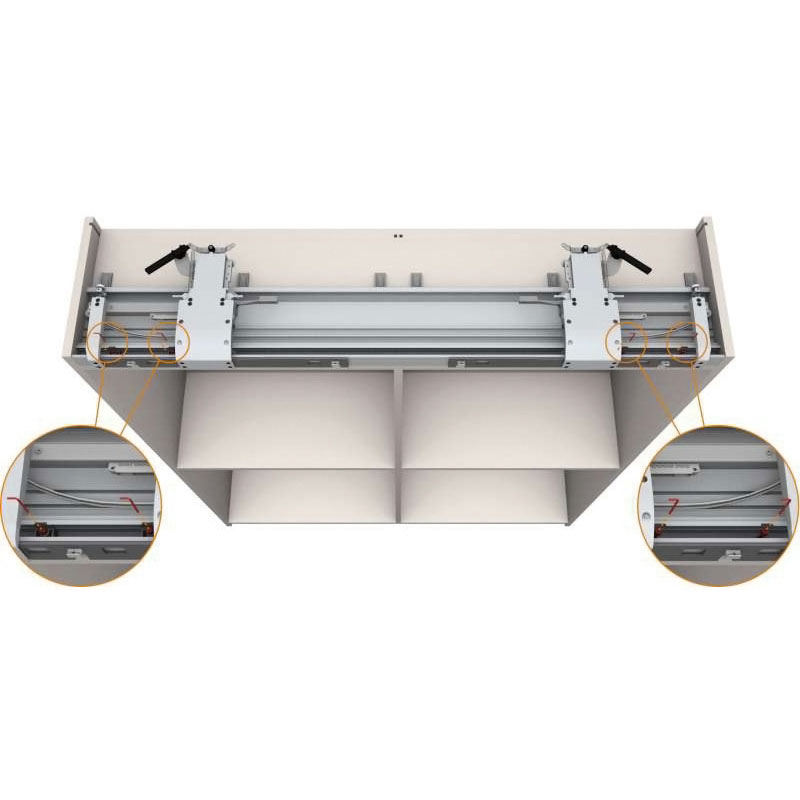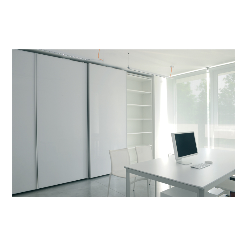 Les ferrures coplanaires permettent d’aménager des meubles, des armoires de bureau ou de dressing avec des ferrures coulissantes dont les portes en position fermée seront dans le même alignement.Cela renforce l’esthétisme du mobilier en éliminant les jeux et décalages entre vantaux des ferrures coulissantes traditionnelles.