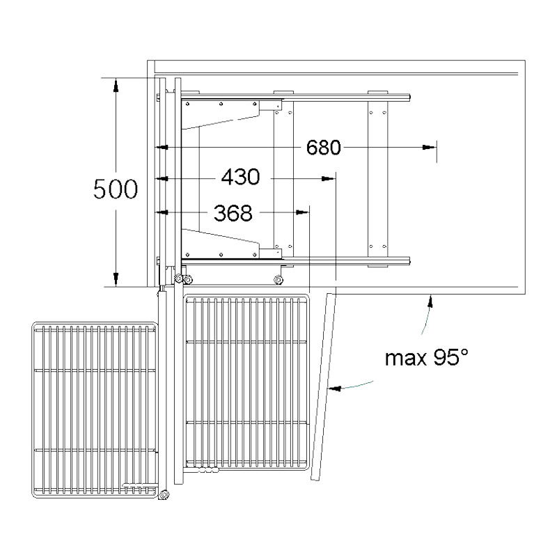 Cette ferrure permet l’extraction totale de l’ensemble des 4 corbeilles.Après la sortie et le coulissement latéral des corbeilles avant, le positionnement automatique des corbeilles arrière face à l’ouverture permet de les tirer vers l’extérieur.Cadres extractibles porte corbeilles sur coulisses à billes avec rappel en fin de course sur amortisseurs.Livrée avec 4 corbeilles en acier décor gris avec côtés fermés largeur 300 mm, profondeur 420 mm, hauteur 100 mm.Armature en acier décor gris.Fixation rapide au sol.Un jeu d’amortisseurs frontal permet un rappel en fin de course des corbeilles arrières dans les 2 sens, ouverture et fermeture.Un jeu d’amortisseurs latéral permet de freiner en douceur la fin de la course latérale de la ferrure dans les 2 sens, ouverture et fermeture.