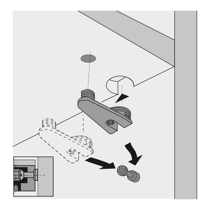 Avec excentrique.Pose verticale ou frontale avec dispositif d'aide au serrage.