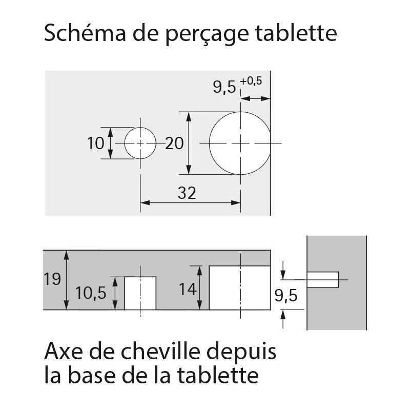 Boitier rasant Ø20 mm à tourillon Ø10 mm.