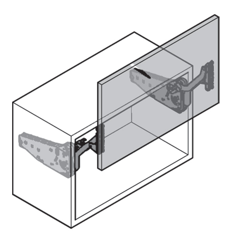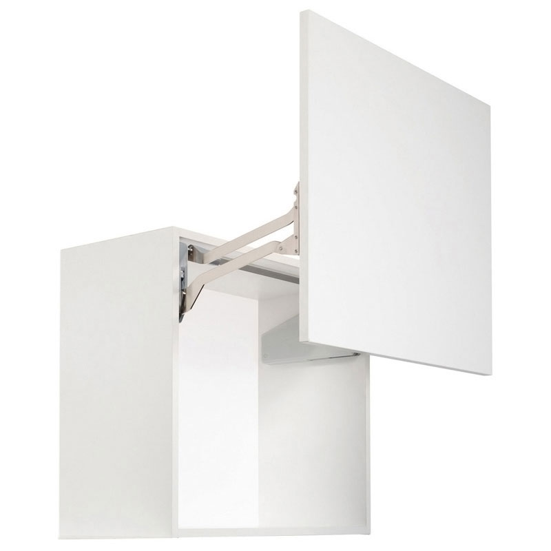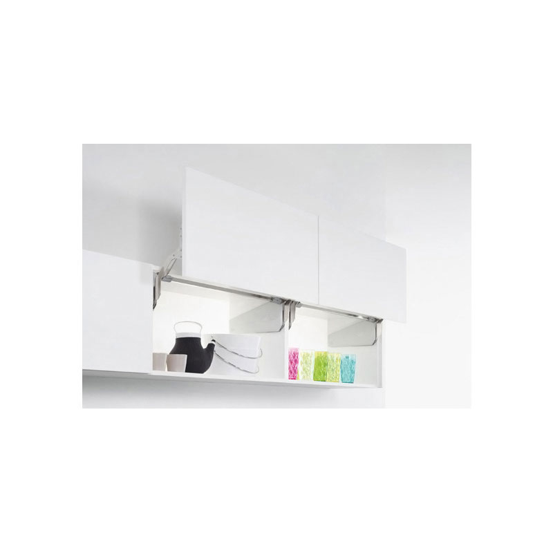 Ferrure à porte relevable verticale.Pour caisson de hauteur 320 à 600 mm.Profondeur mini 277 mm.Pour porte bois ou porte à cadre aluminium largeur mini 20mm.Ouverture fractionnée de la porte.Force de fonctionnement réglable.Fermeture amortie.Réglage façade 3D.