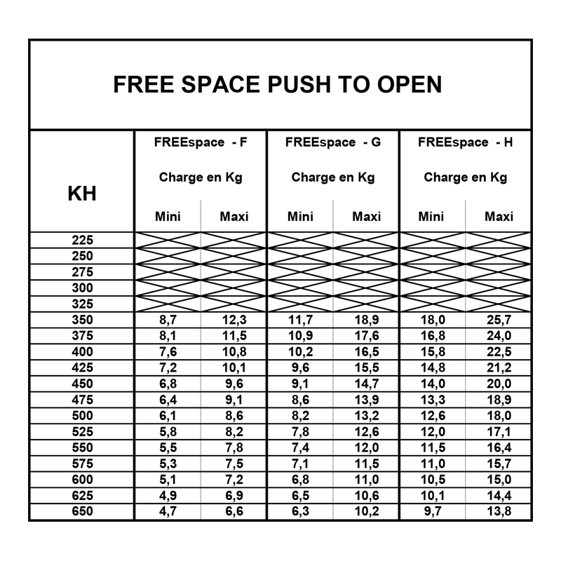 Pour porte bois ou porte avec cadre alu de largeur mini 45mm.Angle d'ouverture 107°ou 90°.Charge variable suivant poids et dimensions des portes.
