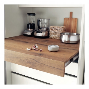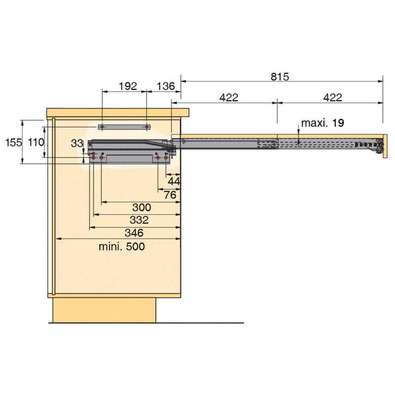 Cette ferrure permet la conception de table d’appoint sans piétement supplémentaire.Une bonne fixation du caisson au mur est recommandée.La façade s’escamote automatiquement à l’ouverture permettant un accès au plateau sans obstacle.Livrée avec caches gris et sans plateau.Sortie partielle possible.Sortie totale longueur 810 mm.Pour plateau épaisseur 16 ou 19 mm.
