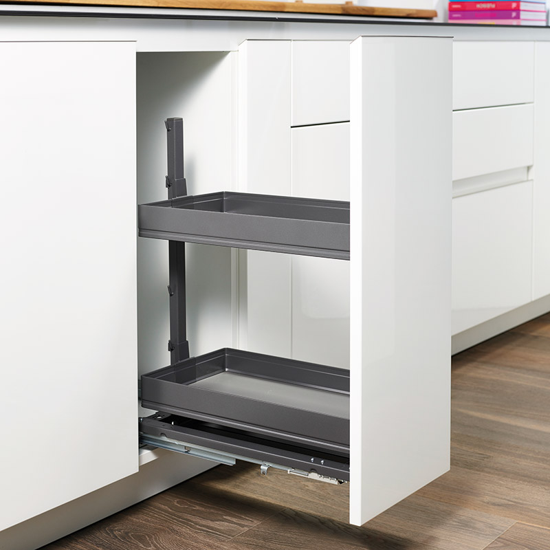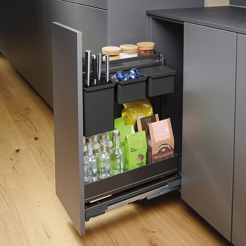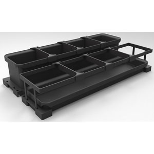 Combiné polyvalent pour meuble bas.Personnalisable avec les tablettes Arena Pure, Arena Style et kits UBOXX. Combinaison possible entre tablettes et bacs UBOXX.Grande flexibilité de rangement pour de multiples applications.Coulisses sortie totale avec rappel fin de course sur amortisseur.Assemblage rapide ClickFixx de la façade sur la ferrure avec réglage simplifié 3D.Livrée sans rangement.