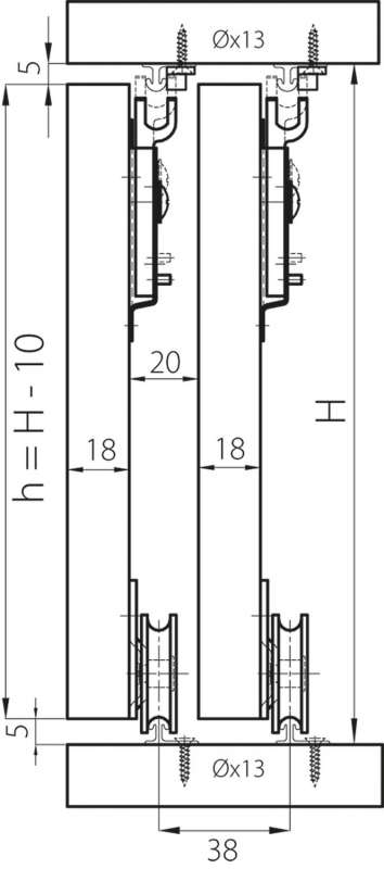 Comprenant la garniture pour 2 vantaux et jeu de rails haut et bas.Ferrure pour porte d’armoire à coulissement par le bas.Pour vantail bois épaisseur 10 à 42 mm.Rail de roulement simple longueur 2000 mm.En aluminium naturel.Guides et roulements avec platine en acier zingué pose en applique larg.35 mm, prof.14 mm.