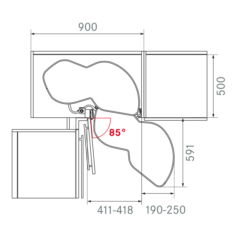 Composée de 2 plateaux indépendants pivotants et sortant intégralement du meuble facilitant l'accès complet au contenu des plateaux.