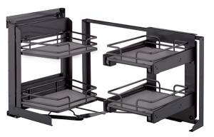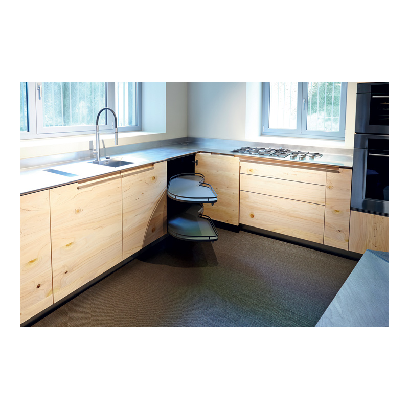 Composée de 2 plateaux indépendants pivotants et sortant intégralement du meuble facilitant l'accès complet au contenu des plateaux.