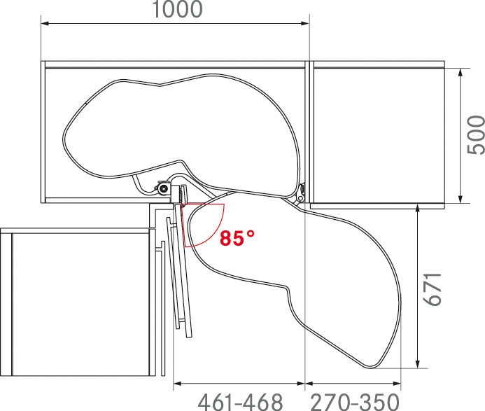Largeur de passage 461 à 468 mm.Caisson droit de 1000 mm.