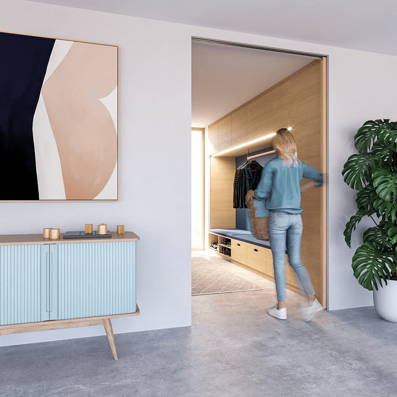 Plus d’intimité dans l’aménagement intérieur grâce à des solutions insonorisées pour portes coulissantes : La nouvelle ferrure Hawa Porta Acoustics offre non seulement une isolation phonique, mais laisse également les odeurs, la lumière et les courants d’air sur le seuil de la porte. Cette extension innovante du système permet ainsi de concevoir de manière flexible les espaces de repos personnels si importants, même dans des concepts architecturaux ouverts.