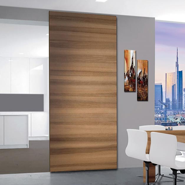 Ferrure coulissante encastrée dans la porte bois, le mécanisme est invisible à l'ouverture comme à la fermeture.Kit complet avec cache profil. kit composé de :