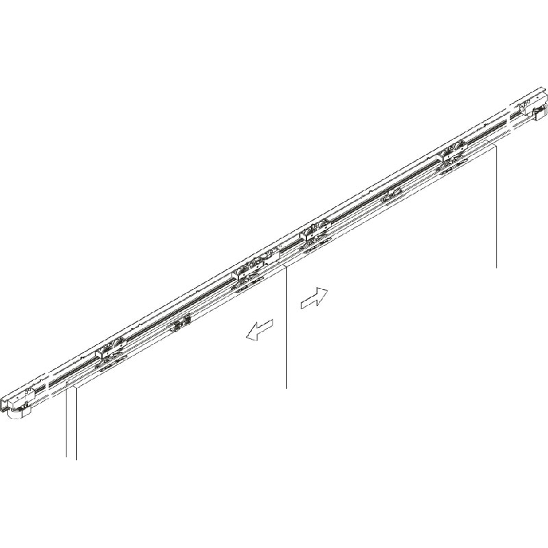 Ce mécanisme adapté aux ferrures Junior 80Z permet d'ouvrir simultanément deux vantaux opposés dans le même alignement. Il permet ainsi une grande ouverture sans rail de guidage bas.